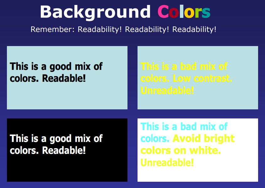 - Colors. Pick your color scheme in advance and stick with it. The best practice is to use three