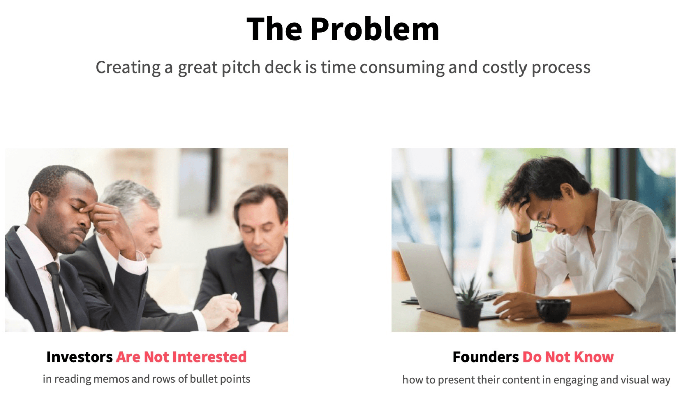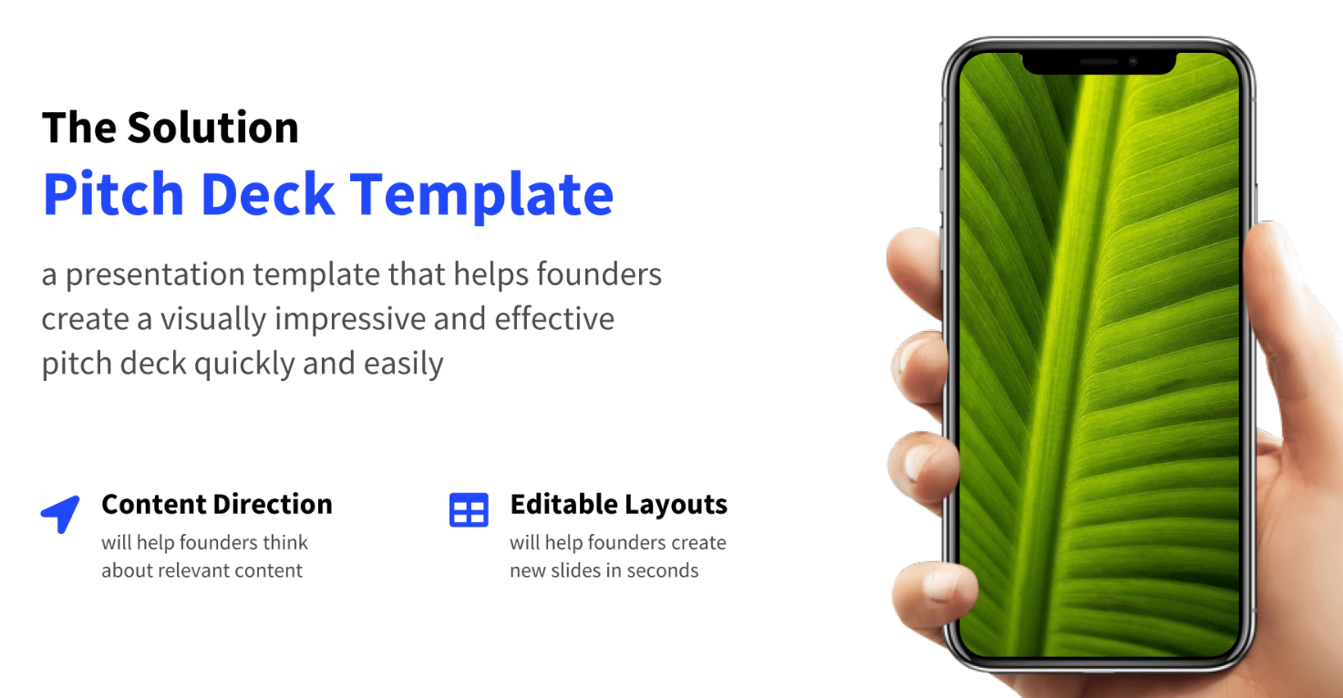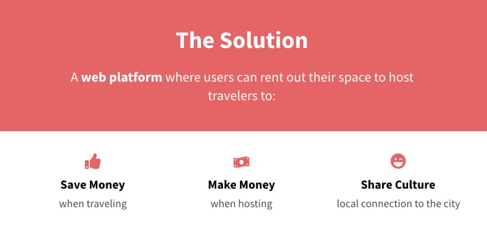 Give a short rundown of how this problem is being solved currently. But any pitch deck is different from the business plan, so a couple of lines is not enough. Instead, try to visualize how to solve the problem and offer a clear step-by-step guide to implement your idea. And illustrate your thoughts with images and infographics that will help your partners or investors understand your way of thinking.