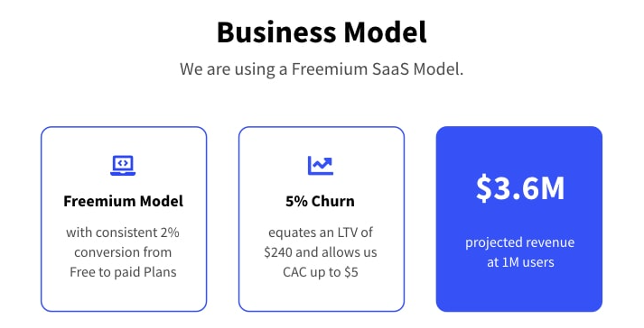 Any business plan pitch is incomplete without your key revenue streams. So this is where you identify your target market and show off your numbers – pricing, revenues, conversion rates, etc. Next, add infographics that show your business model and growth prospects. Surely your investors will like the illustration of growth rates or financial forecasts depending on the amount of funding.