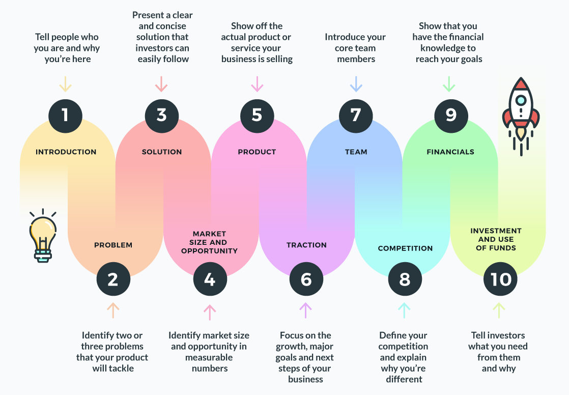 Sometimes such a presentation is called a startup pitch because your goal is to show investors the prospects for cooperation with your company. Why should they invest in your ideas? What growth rate can your company show in the next few years? When will you pass the breakeven point? Usually, you will need no more than 10-12 slides to craft a good presentation.